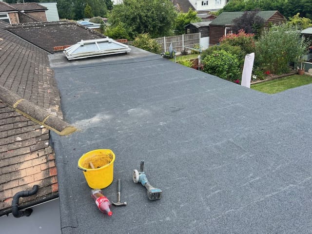 GPM then installed a 3 layer torch on system to the entire flatroof space in a charcoal grey colour. The client was very pleased with the finished project and the 5 year guarantee on all our flatroofs.